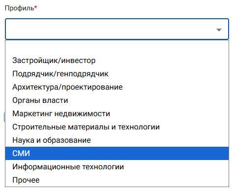 В выпадающем меню «Профиль» необходимо выбрать тип организации — СМИ: